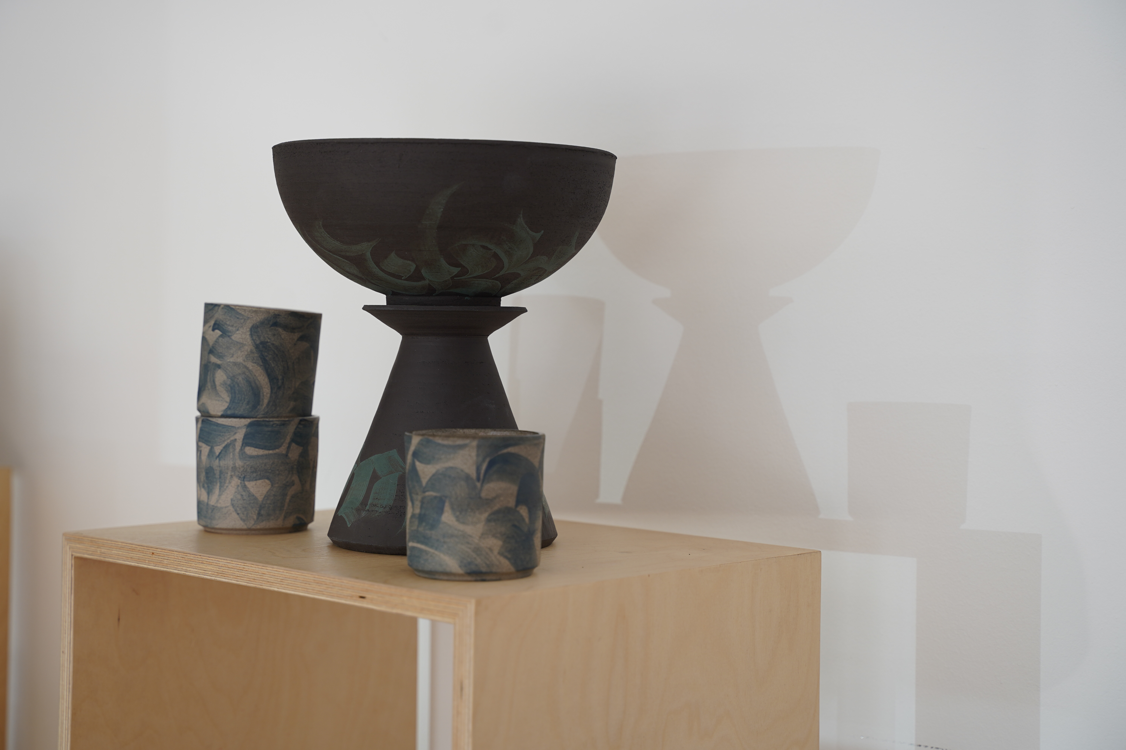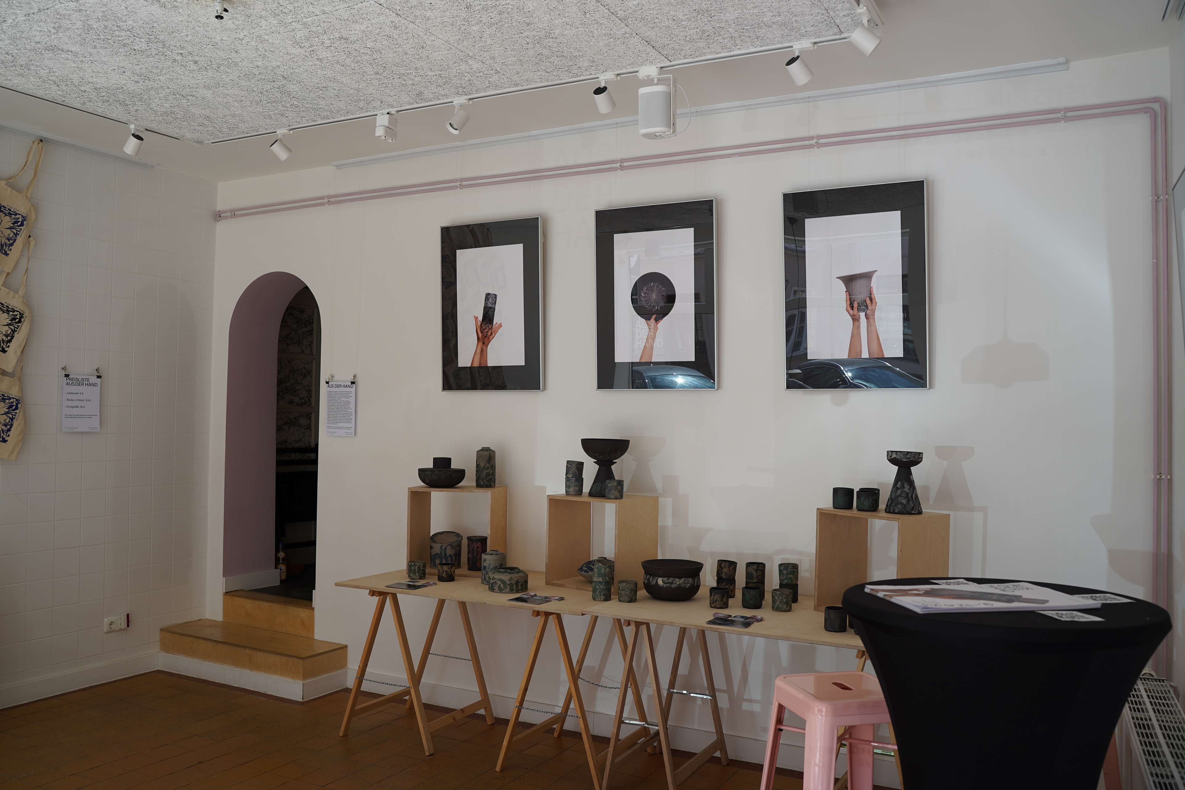 Die Resultate, eine Reihe großformatiger Gefäße und eine Vielzahl kleinerer Trinkgefäße, laden zur Betrachtung und unterschiedlichsten Nutzungsinterpretationen ein. Jede der Keramiken ist ein Unikat. Durch das Drehen per Hand von Alexandra Wegner und Jorinde Ortlieb, sowie die individuelle Kalligrafie von Ole Freytag, für jedes Objekt, sind keine zwei Stücke gleich.